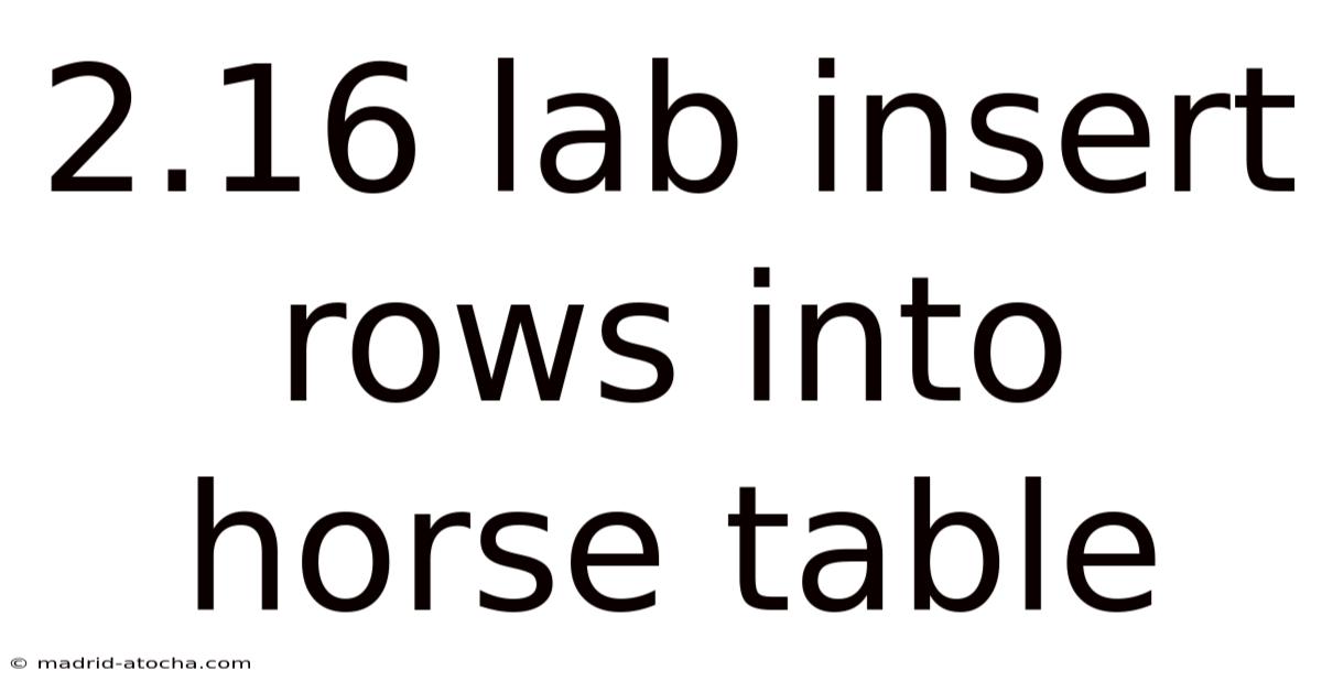 Before we dive into the process of inserting rows, make sure to understand what a horse table is and what it typically contains. And a horse table, in the context of a lab database, is a structured collection of data related to horses. This can include fields for the horse's identification number, name, age, breed, health records, vaccination status, and more. Each row in the table represents a unique horse, and each column represents a specific attribute or data point related to that horse Not complicated — just consistent..
