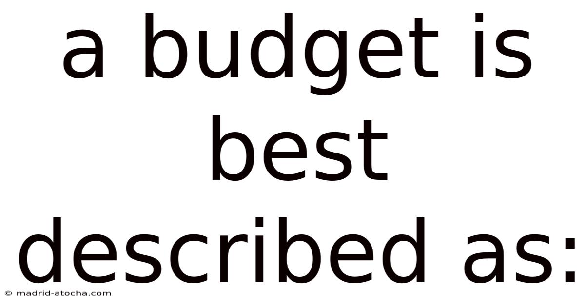 A budget is bestdescribed as a strategic financial plan that aligns resources with goals, providing a roadmap for spending, saving, and investing.