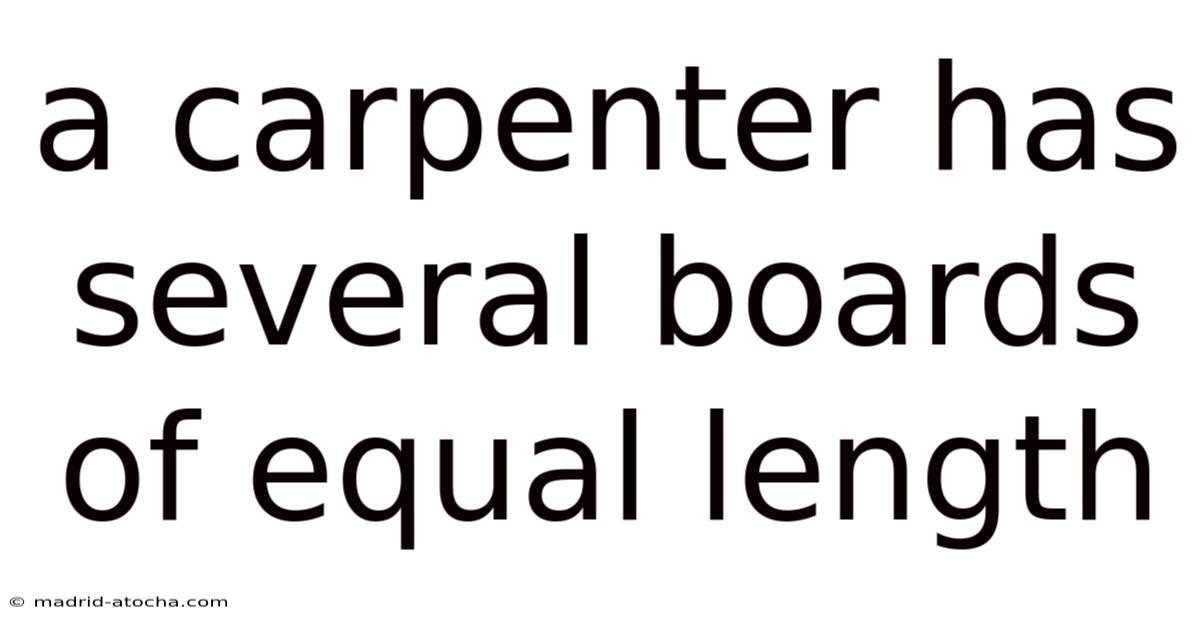 Whena carpenter has several boards of equal length, the situation often becomes a practical math puzzle that blends woodworking skills with basic arithmetic. Whether the goal is to cut the boards into smaller pieces for a project, to determine how many identical shelves can be made, or to figure out the least amount of waste, understanding how to work with equal‑length boards is essential. This article walks through the concepts, methods, and real‑world applications that help carpenters turn a simple statement—a carpenter has several boards of equal length—into a clear plan of action.
