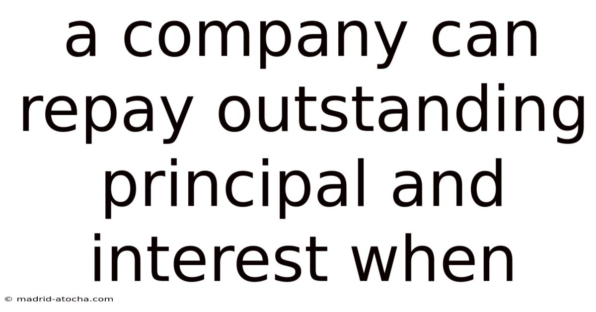 A company can repay outstanding principal and interest when it has sufficient cash flow, access to financing, or meets specific covenant triggers outlined in its loan agreements; understanding these conditions is essential for effective financial planning and compliance That's the part that actually makes a difference..