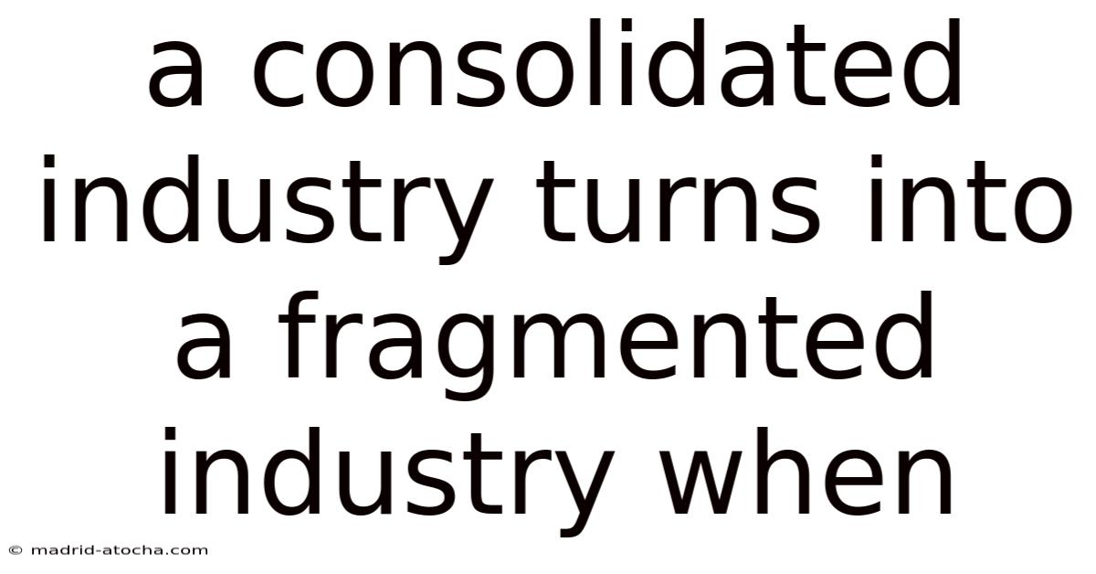 In the world of economics and strategic management, the structure of an industry dictates how companies compete, price their products, and innovate. While we often hear about market consolidation—where a few giant firms swallow up smaller competitors to dominate the landscape—the reverse process is equally fascinating. A consolidated industry turns into a fragmented industry when the barriers to entry drop, disruptive technologies emerge, or regulatory shifts force the breakup of monopolies. Understanding this transition is crucial for entrepreneurs looking for gaps in the market and for established firms trying to defend their territory That's the part that actually makes a difference..