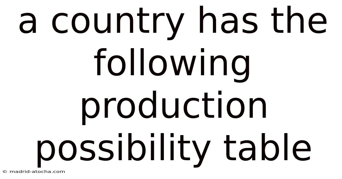 A production possibility table (PPT) is a concise way to show how a country can allocate its scarce resources between two goods or services. On top of that, by examining the numbers in the table, we can infer the shape of the production‑possibility frontier (PPF), identify opportunity costs, detect inefficiencies, and discuss the impact of economic policies or technological changes. This article walks through a typical PPT, explains the underlying concepts, and shows how to use the table for strategic decision‑making.