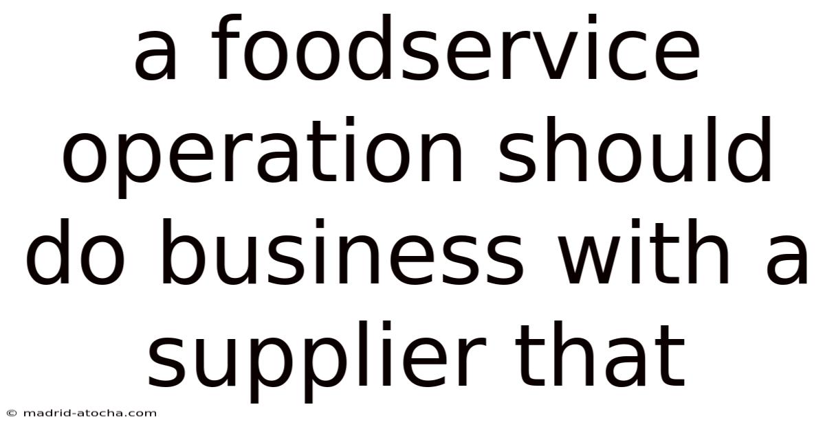 A Foodservice Operation Should Do Business With A Supplier That