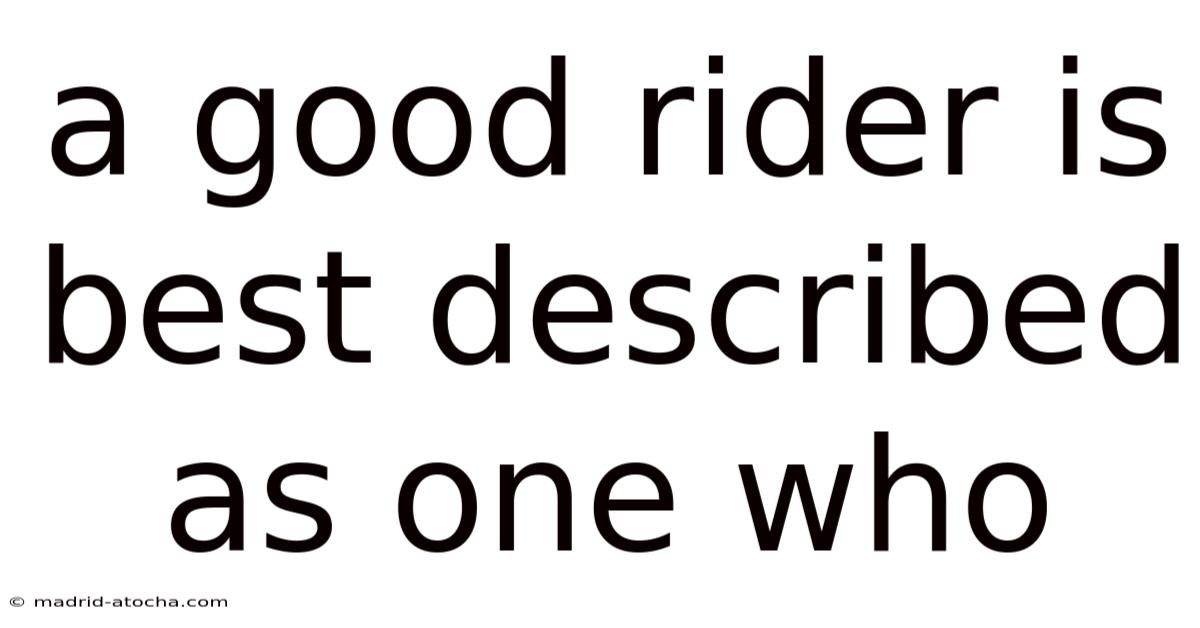 A Good Rider Is Best Described As One Who