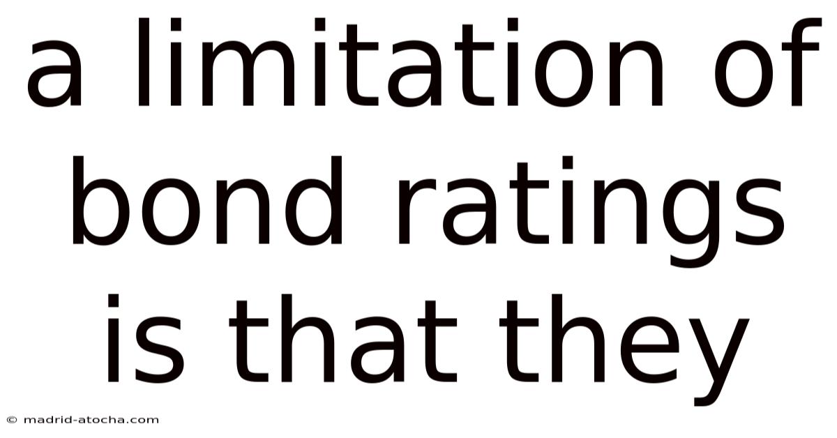 A Limitation of Bond Ratings Is That They Rely on Static Assessments, Which Can’t Adapt to Dynamic Market Conditions