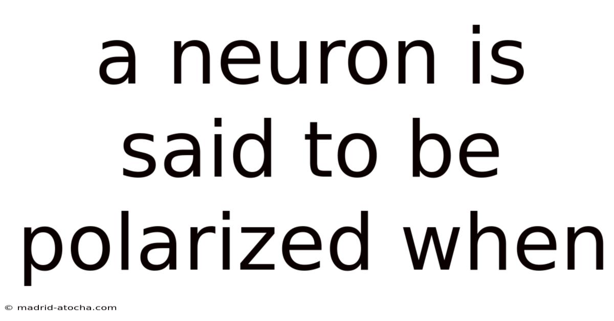 A neuron is said to be polarized when there is a distinct difference in electrical charge between its interior and exterior. And this phenomenon, known as neuronal polarization, is a fundamental aspect of how neurons function. Now, it creates the electrochemical gradient necessary for transmitting signals through the nervous system. Polarization is not just a passive state but an active process that relies on the careful regulation of ion movement across the neuron’s membrane. Understanding this process is essential for grasping how the brain and nervous system operate, from simple reflexes to complex cognitive functions Practical, not theoretical..
