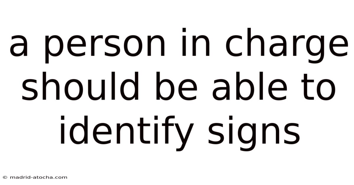 Understanding the importance of recognizing signs is a crucial skill for anyone looking to take charge effectively. When a person in charge is able to identify the right signs, they set the foundation for informed decision-making and proactive leadership. This ability not only enhances their authority but also empowers them to respond swiftly to challenges. In this article, we will explore what it means to be in a position of leadership, the significance of identifying signs, and practical ways to develop this essential skill That's the part that actually makes a difference..