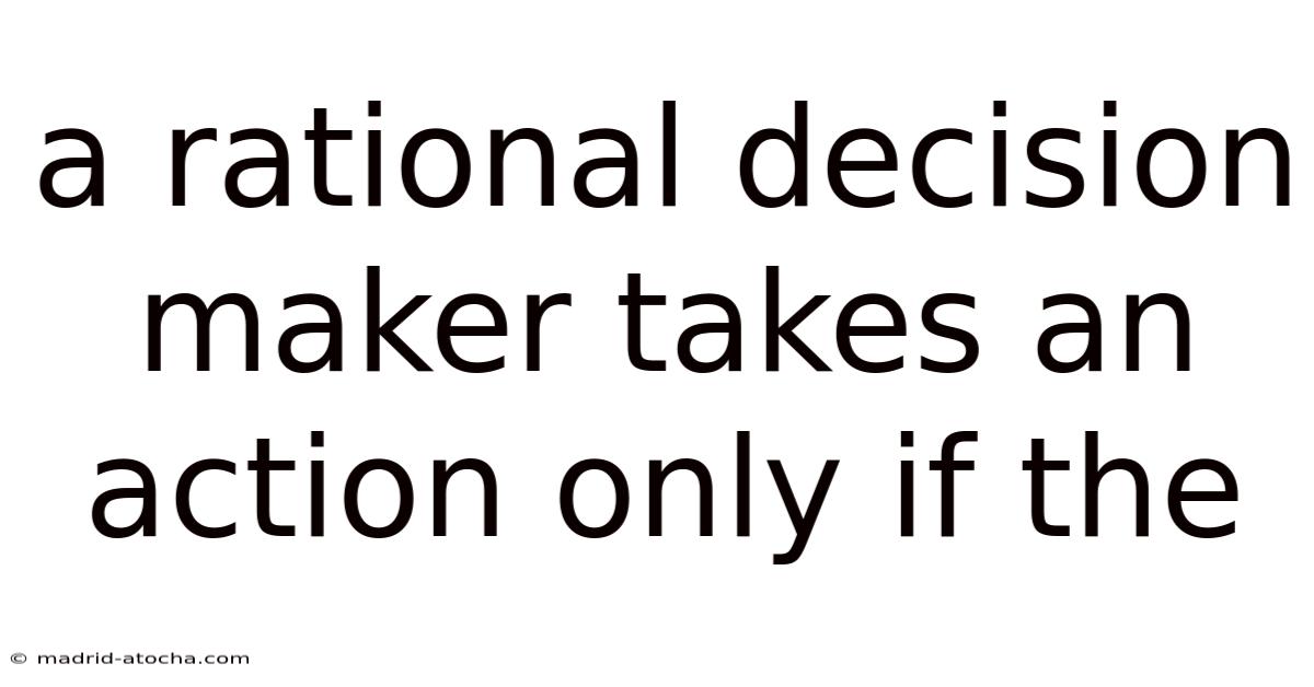 A rational decision maker is an individual or entity that evaluates choices systematically, weighing costs and benefits to maximize outcomes. And the phrase “takes an action only if” underscores a critical threshold in decision theory: actions are initiated when specific criteria are met. This concept, rooted in economics and psychology, assumes that people act purposefully, seeking to optimize their well-being within constraints. Let’s explore how rational actors determine when to act, the frameworks guiding their choices, and the implications of this behavior Which is the point..