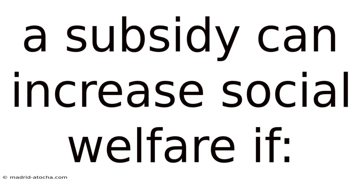 Conditions Under Which a Subsidy Enhances Social Welfare