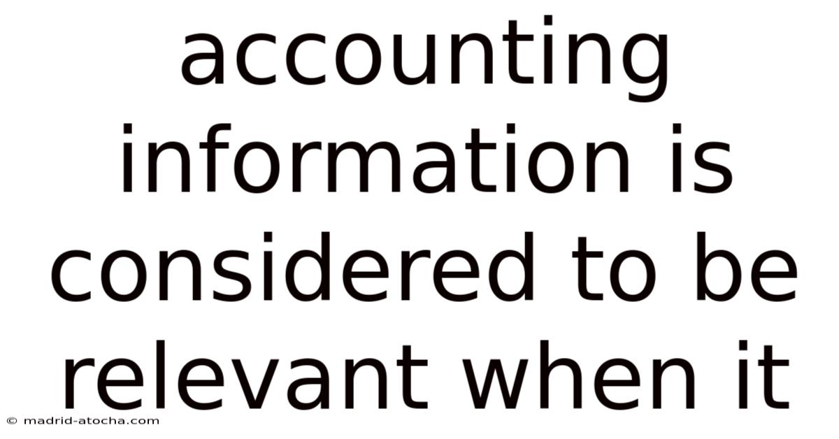 In the world of finance and business management, the quality of data determines the quality of the decision. Worth adding: Accounting information is considered to be relevant when it possesses the capacity to make a difference in the decisions made by users. Relevance is one of the two fundamental qualitative characteristics of financial reporting—the other being faithful representation. Without relevance, financial statements become mere historical archives rather than strategic tools for growth, risk management, and investment Still holds up..
