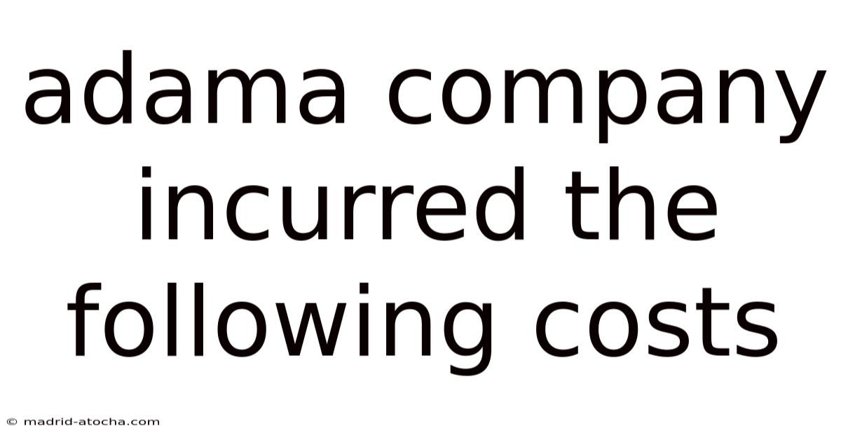 Adama Company Incurred the Following Costs: A Comprehensive Breakdown