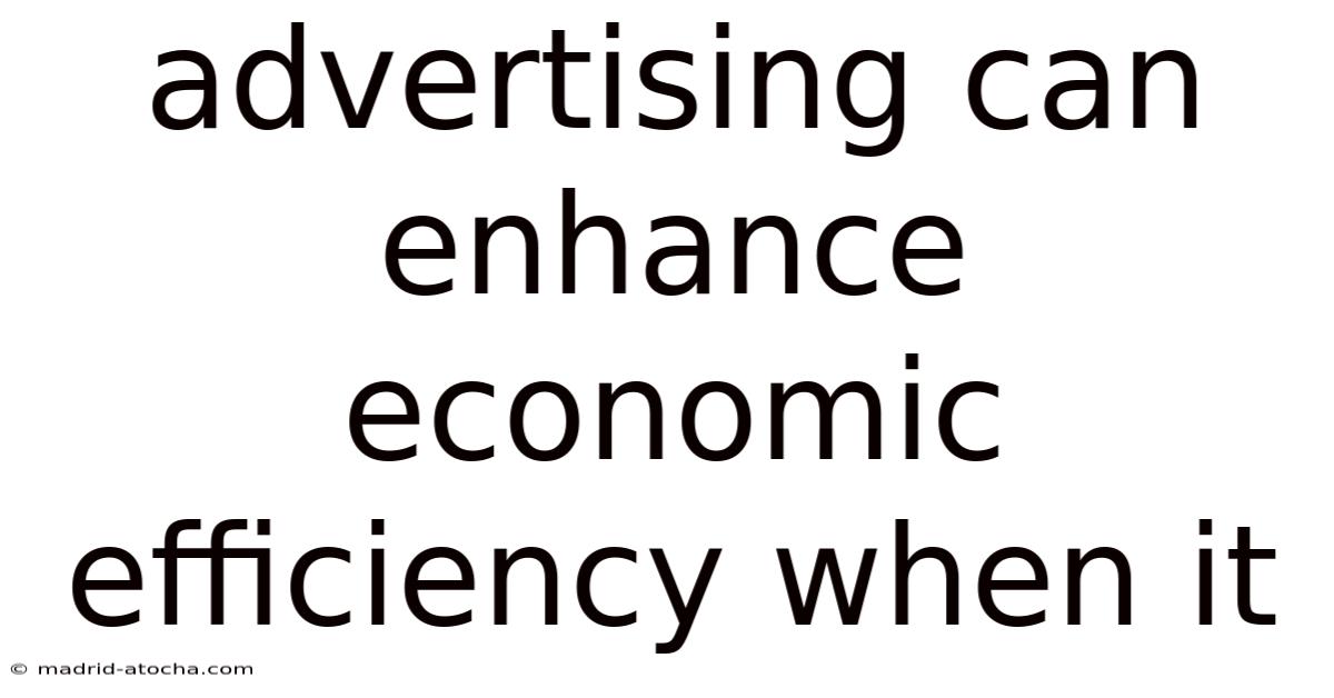 Economic efficiency is not a static endpoint but a dynamic process of alignment between resources and goals. But Advertising can enhance economic efficiency when it acts as a coordination mechanism that reduces ignorance, sharpens competition, and accelerates learning. By clarifying options, compressing search, and reinforcing accountability, it helps markets function with greater precision and fairness It's one of those things that adds up..