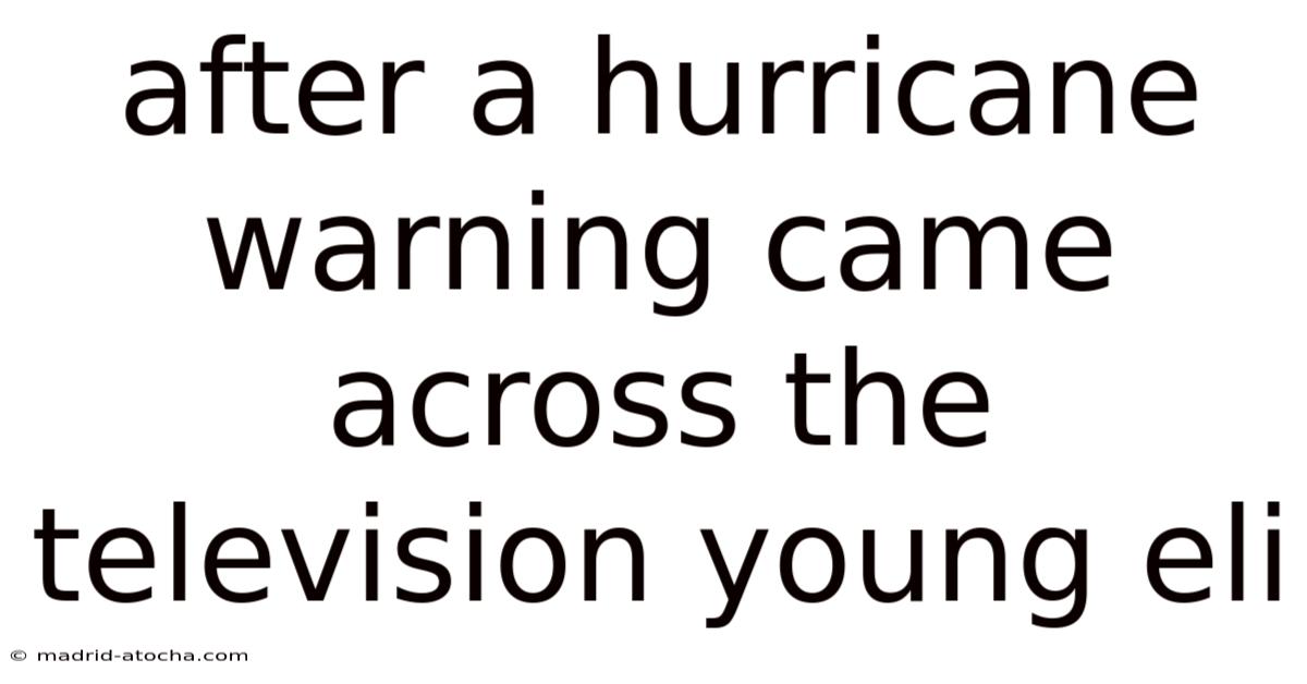 When the meteorologist’s voice crackled through the living room, the familiar weather map turned ominous. Key visual cues—the bright red spiral, the expanding radius of wind speeds, and the urgent tone—served as a trigger for Eli’s decision‑making process.