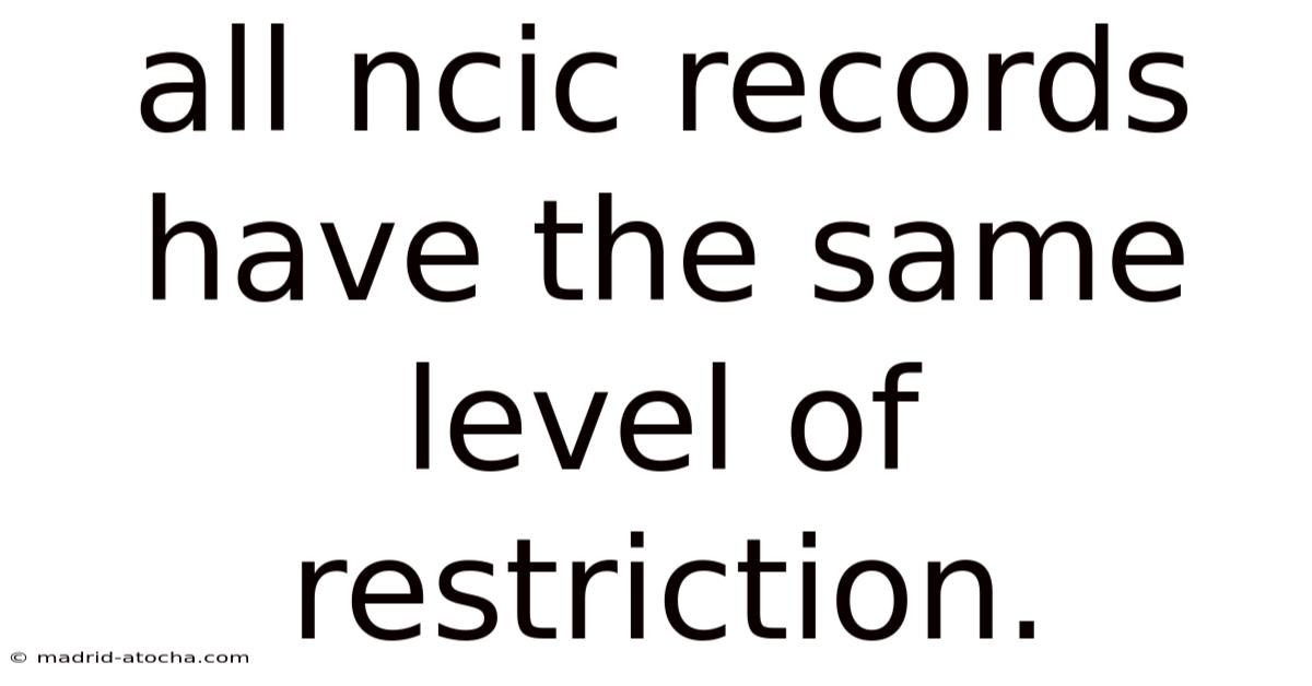 The phrase all NCIC records have the same level of restriction often surfaces in training sessions, policy briefings, and casual conversations about law‑enforcement databases. While it captures a kernel of truth—that every NCIC entry is subject to some form of access control—it oversimplifies a nuanced framework. Understanding the true scope of NCIC restriction levels is essential for anyone who interacts with criminal history information, from police officers and prosecutors to researchers and policy analysts.