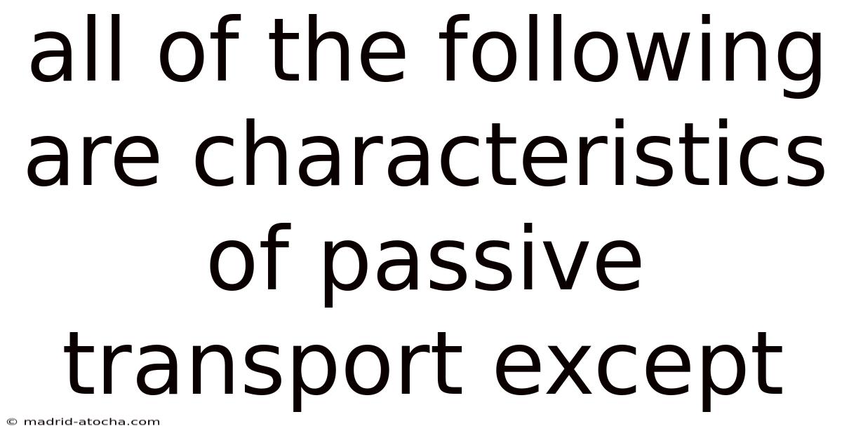 Passive transport is a fundamental process in cellular biology that allows substances to move across cell membranes without the use of energy. And this mechanism is crucial for maintaining cellular homeostasis and facilitating various physiological functions. On the flip side, there are certain characteristics that are often misunderstood or incorrectly associated with passive transport. In this article, we will explore the true nature of passive transport and identify which of the commonly mentioned characteristics do not actually apply to this process Turns out it matters..