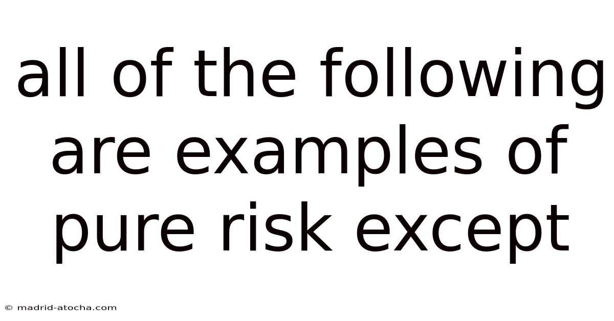 Risk permeates every aspect of life and business. In practice, while some risks offer the potential for reward alongside the possibility of loss (speculative risks), others carry only the specter of loss or the certainty of no change (pure risks). Pure risk is a fundamental concept in insurance, finance, and business continuity planning. It encompasses events where the outcome is binary: either a loss occurs, or nothing happens. But examples include natural disasters, accidental damage, or death. On the flip side, the key differentiator from speculative risk is the absence of any potential upside. And identifying pure risks helps individuals and organizations prepare for inevitable adversities. This piece examines several scenarios typically classified as pure risks and highlights the one that does not fit this category.