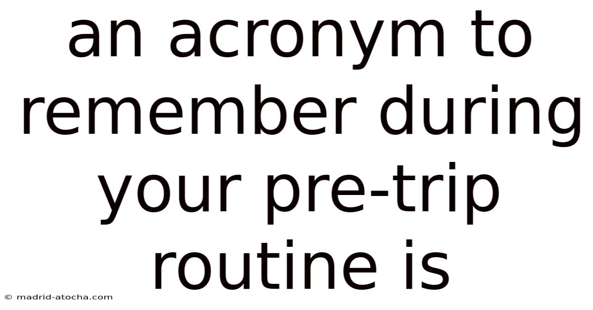 A: The beauty of an acronym is that you can pause and run through it mentally before you start the engine. Even a brief mental run‑through can catch missing items that you might otherwise overlook.