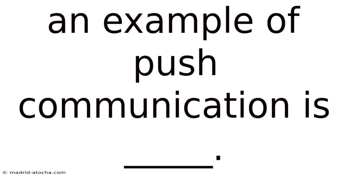 An example of pushcommunication is a company-wide email announcing a new policy change. Here's the thing — this method involves sending information directly to recipients without requiring them to actively seek it out. The sender initiates the communication flow, pushing the message to the audience. This contrasts sharply with pull communication, where recipients actively request or seek out information, such as visiting a website or subscribing to a newsletter No workaround needed..