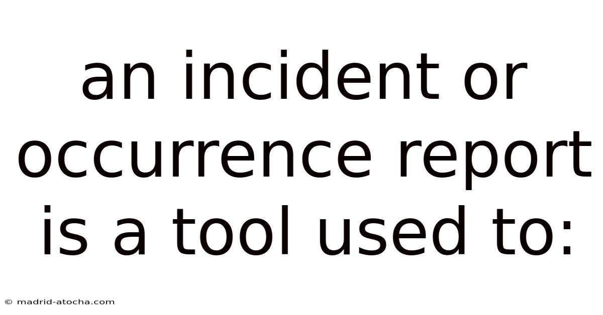 An Incident or Occurrence Report Is a Tool Used to: Capture, Analyze, and Improve Safety and Compliance