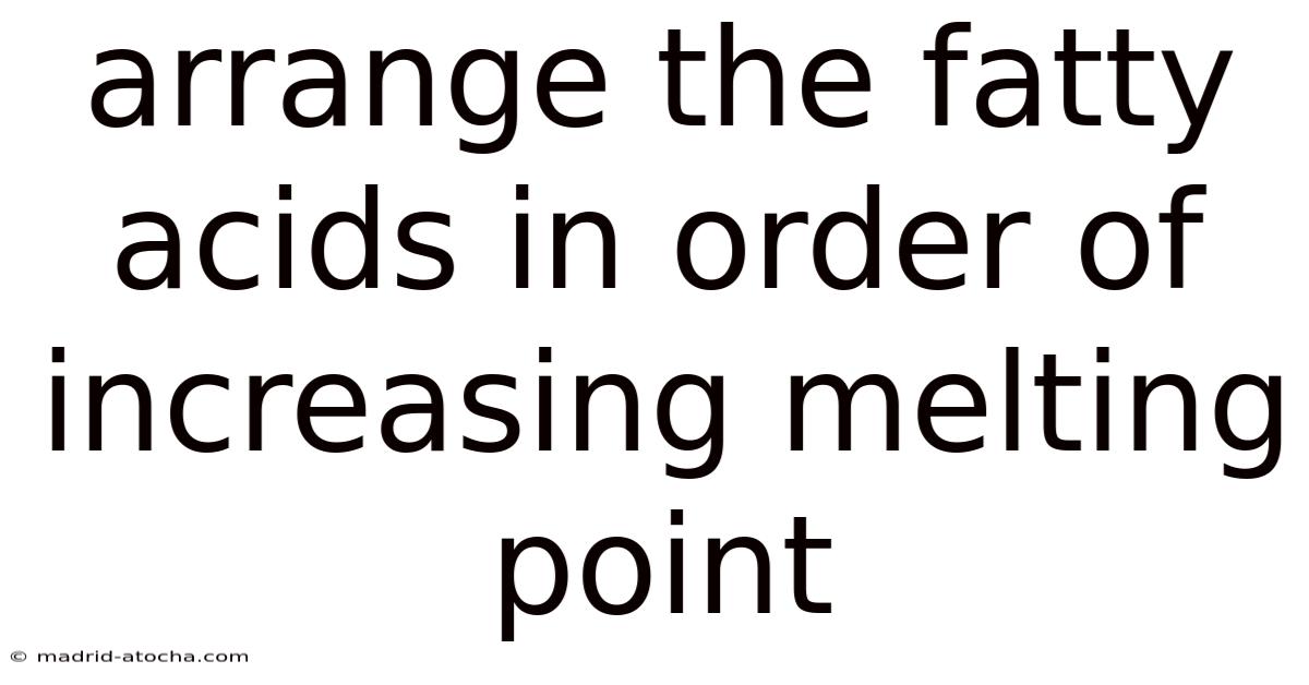 From this table you can see that arrange the fatty acids in order of increasing melting point yields: linoleic (–5) → oleic (13) → palmitic (63) → stearic (69) → lauric (44) → ... (the exact sequence depends on the specific set you are evaluating) Which is the point..