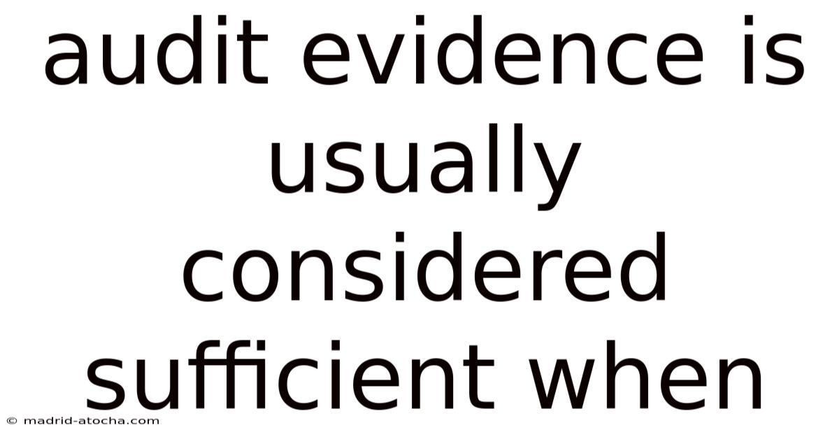 Audit evidence is usually considered sufficient when it meets the criteria of relevance, reliability, and completeness, allowing auditors to form an opinion on the financial statements with reasonable assurance.