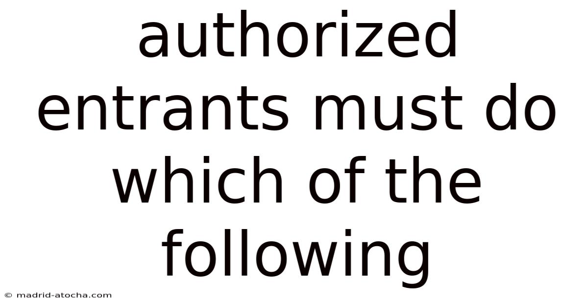 Authorized entrants are individuals granted permission to access restricted or controlled areas, often due to their role in operations, maintenance, or inspections. These individuals play a critical role in ensuring safety, compliance, and efficiency in environments such as construction sites, industrial facilities, laboratories, or disaster response zones. Even so, with this privilege comes responsibility. Worth adding: authorized entrants must adhere to strict protocols to mitigate risks, protect themselves and others, and maintain regulatory compliance. This article outlines the essential actions and requirements authorized entrants must follow, emphasizing their importance in safeguarding personnel and operations.