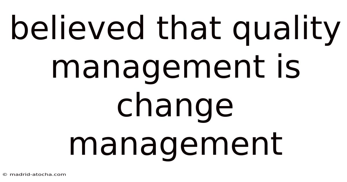 Believed That Quality Management Is Change Management