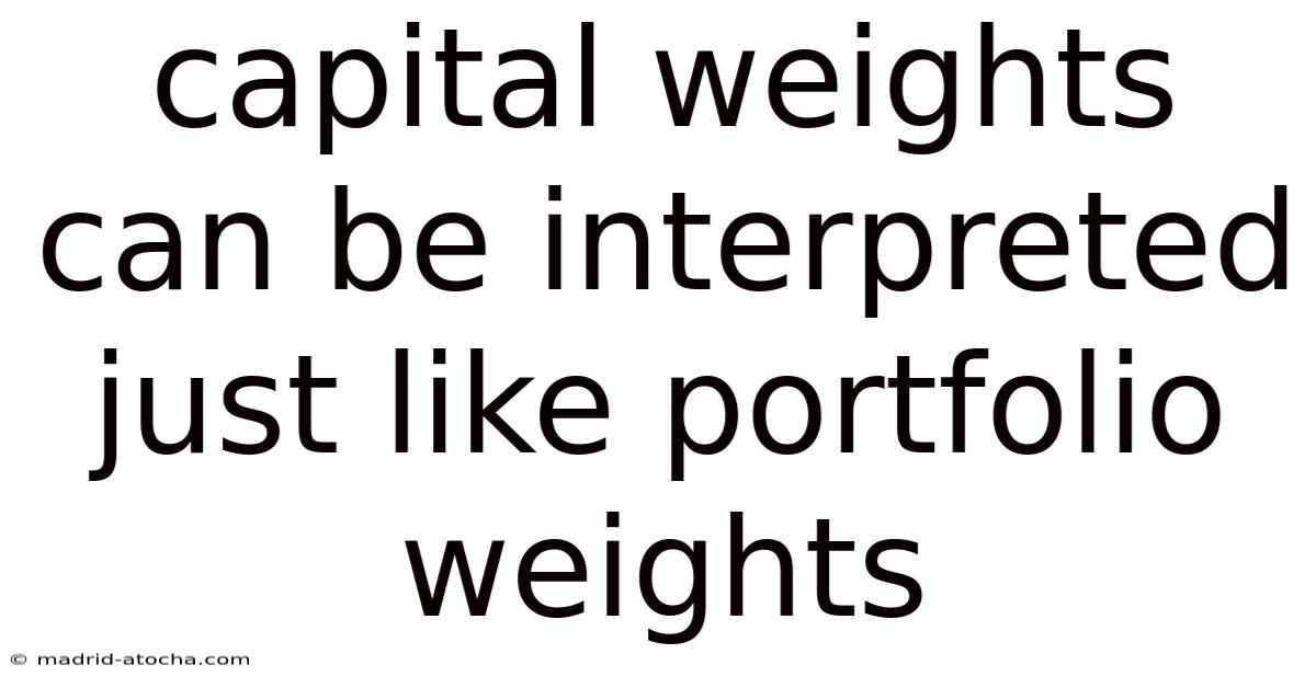 When discussing financial structures or investment strategies, terms like capital weights and portfolio weights often appear in conversations about allocation, risk management, and performance analysis. Think about it: equity), and portfolio weights refer to the distribution of assets within an investment portfolio—they share a fundamental mathematical and conceptual foundation. This article explores how capital weights can be interpreted just like portfolio weights, emphasizing their shared principles, calculation methods, and practical applications. While these terms originate from different domains—capital weights typically relate to a company’s financing mix (debt vs. By understanding this analogy, professionals and investors can gain a unified framework for analyzing financial decisions, whether in corporate finance or personal investment.
