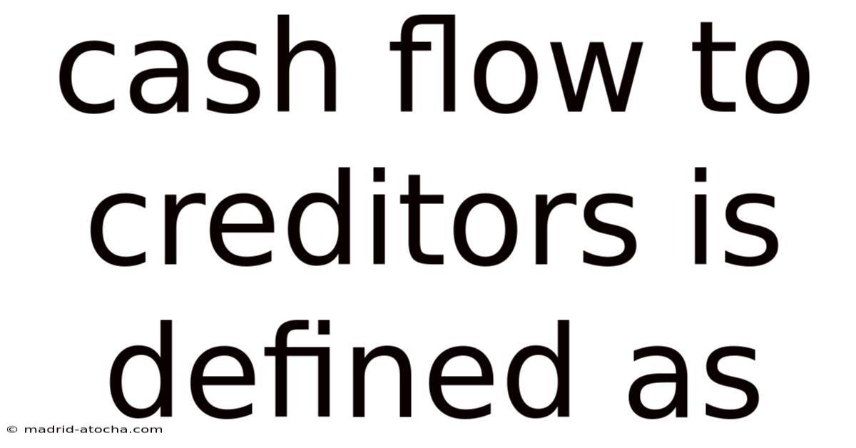 Cash Flow toCreditors Is Defined as the Total Amount of Cash a Business Pays to Its Debt Holders Over a Specific Period