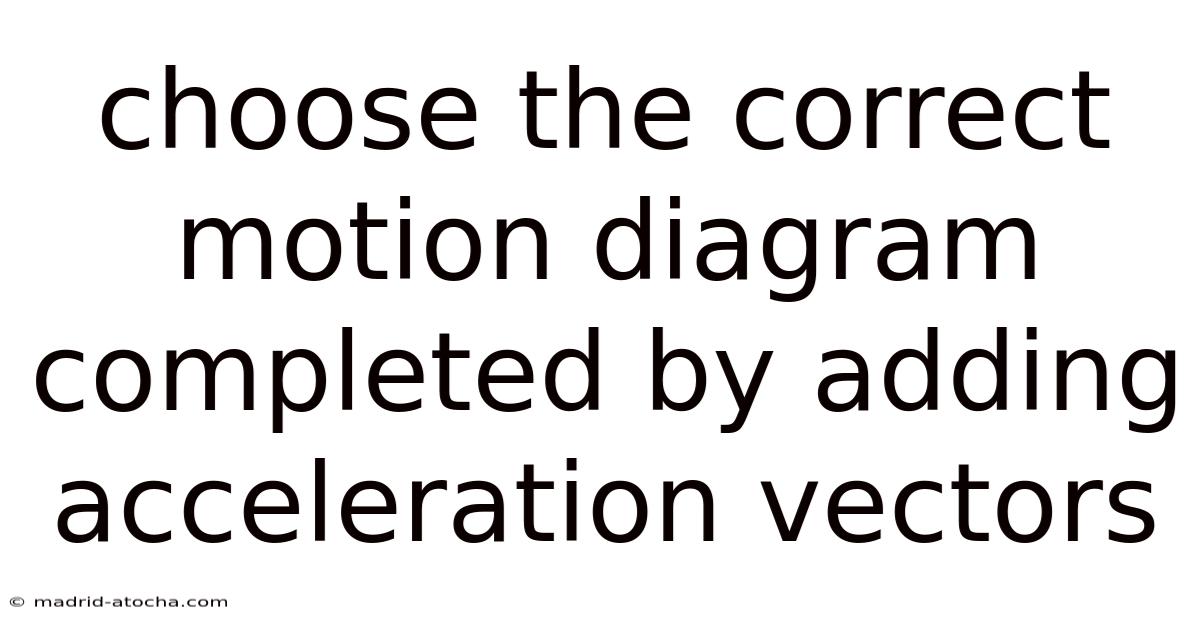 If you're are asked to choose thecorrect motion diagram completed by adding acceleration vectors, you are essentially being guided through a systematic way of visualizing how an object’s velocity and acceleration change over time. This process is a cornerstone of introductory physics, especially within the study of kinematics, where understanding the relationship between position, velocity, and acceleration enables students to predict and explain real‑world motion. In this article we will walk through the conceptual framework, outline a step‑by‑step method for constructing the proper diagram, explore the underlying scientific principles, address common questions, and conclude with a concise summary that reinforces the key takeaways.