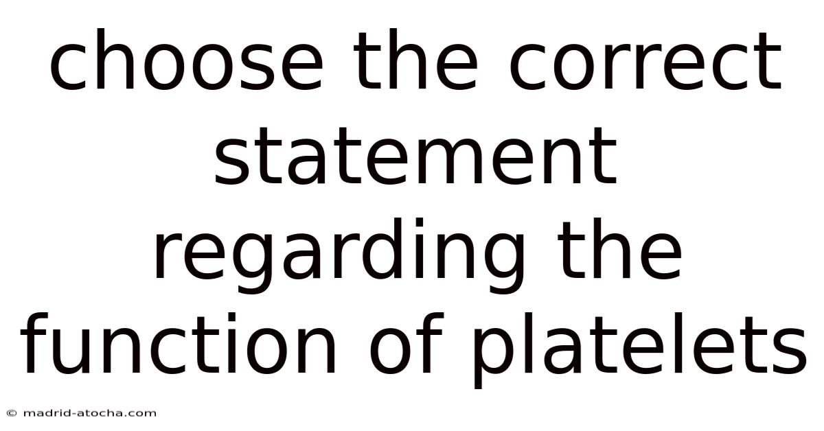 Debunking Common Misconceptions To solidify why we must choose the correct statement regarding the function of platelets, it is helpful to contrast the truth with popular myths: