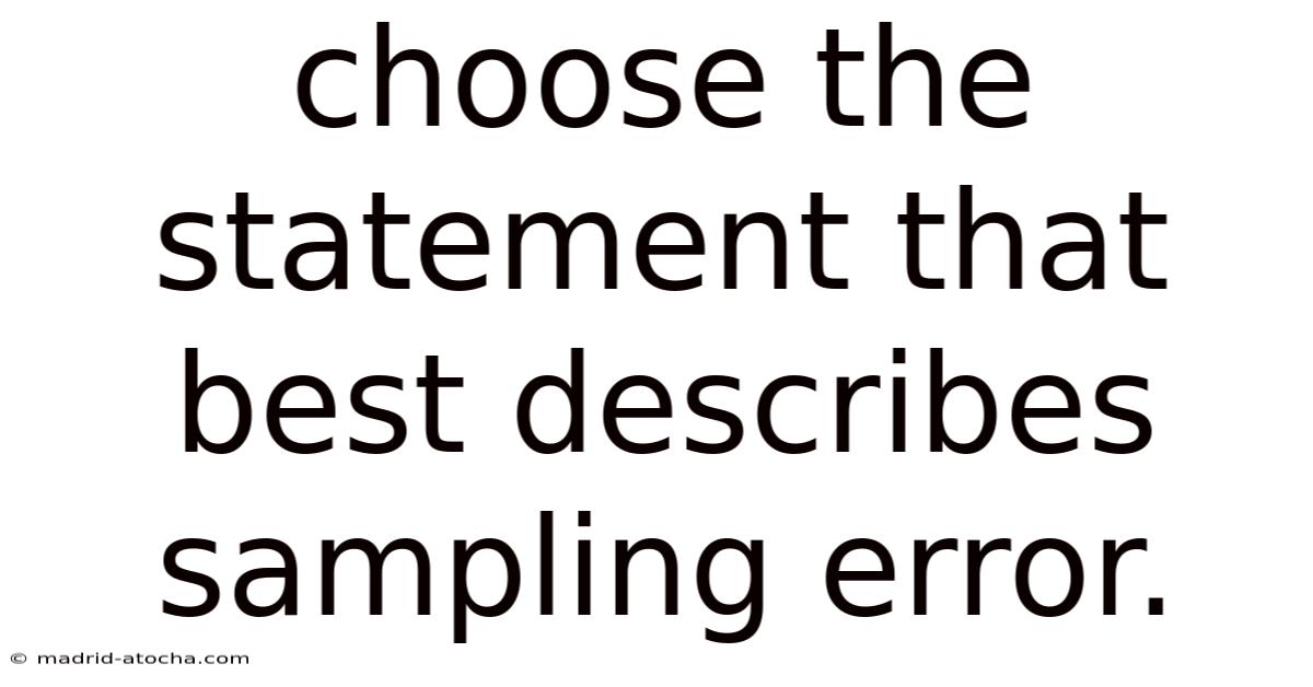 All in all, choosing the statement that best describes sampling error is not just an academic exercise but a vital skill for anyone engaged in data-driven activities. Still, by recognizing the inherent uncertainties in sampling, we can take proactive steps to mitigate their effects. Here's the thing — whether you are a student, a professional, or a curious learner, understanding sampling error is essential for navigating the complexities of data analysis. Think about it: this knowledge not only enhances your analytical abilities but also fosters a deeper appreciation for the precision required in research. As we continue to rely more on data in our decision-making processes, mastering this concept will serve as a powerful tool in your toolkit Small thing, real impact..