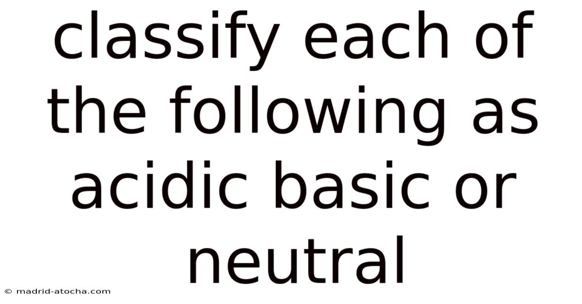 Classify Each Of The Following As Acidic Basic Or Neutral
