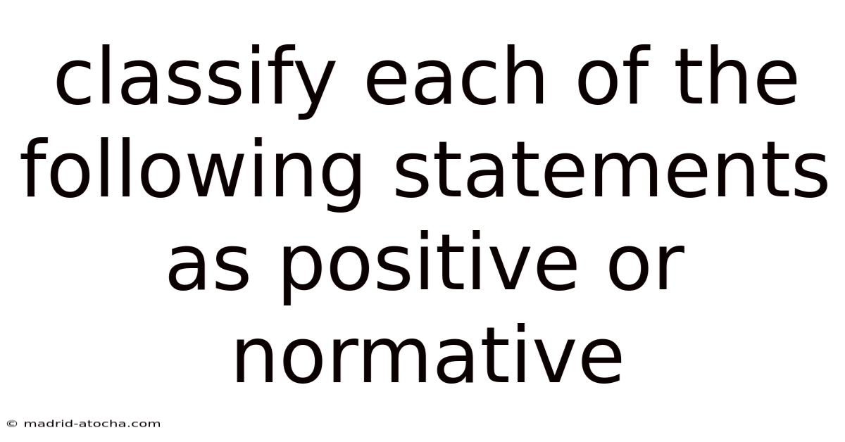 Understanding the fundamental distinction between positive and normative statements is a cornerstone of clear thinking, especially in economics, political science, and public policy. That's why when you encounter a claim—whether in a news article, a political speech, or a social media post—being able to accurately classify each of the following statements as positive or normative empowers you to respond appropriately, seek relevant evidence, and understand the underlying assumptions. A positive statement describes how the world is, while a normative statement prescribes how the world ought to be. This classification isn't just an academic exercise; it's a vital tool for separating factual debates from value-based disagreements, allowing for more productive conversations. Mastering this dichotomy sharpens your analytical skills and prevents you from talking past others in heated debates And that's really what it comes down to..