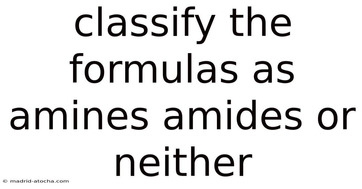 Organic chemistry often groups nitrogen‑containing compounds into three broad categories: amines, amides, and structures that belong to neither class. On the flip side, recognizing which category a molecular formula falls into is essential for predicting reactivity, understanding biological activity, and designing synthetic routes. This article explains the defining features of amines and amides, provides a systematic method for classifying any given formula, and walks through dozens of representative examples. By the end, you will be able to look at a molecular formula—or its structural sketch—and confidently label it as an amine, an amide, or neither Most people skip this — try not to..