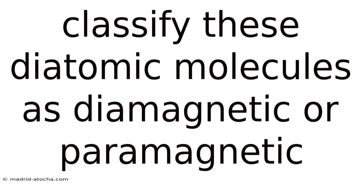 Knowing how to classify these diatomic molecules as diamagnetic or paramagnetic has real-world importance.