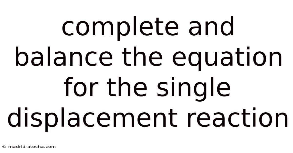 Single displacement reactions represent one of the fundamental types of chemical reactions that students encounter in chemistry. Understanding how to complete and balance the equation for the single displacement reaction is an essential skill that forms the foundation for more advanced chemical studies. This article will guide you through the complete process of identifying, completing, and balancing single displacement reactions with clarity and confidence Practical, not theoretical..