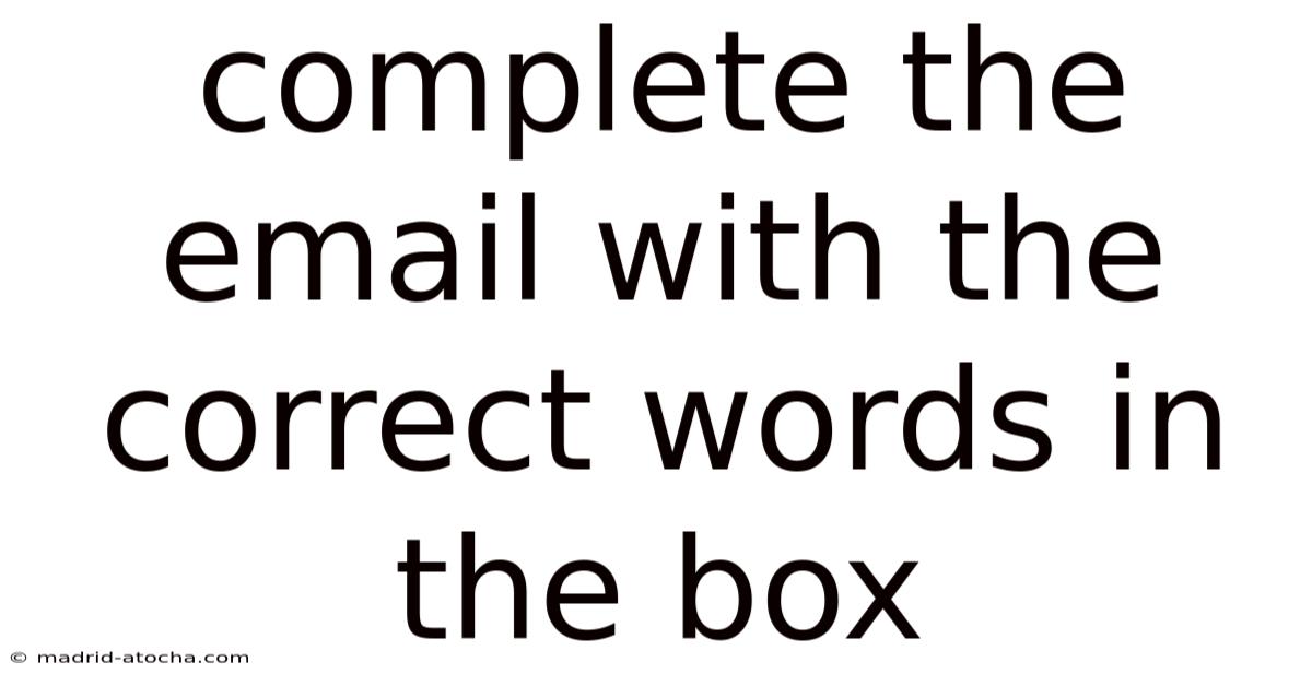 Completing an email with the correct words from a given box is a common exercise in language learning and business communication courses. This type of task tests your understanding of context, vocabulary, and sentence structure, while also improving your ability to choose the most appropriate words to convey a clear and professional message.