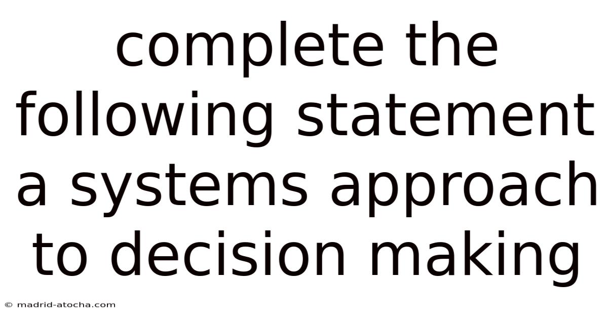ASystems Approach to Decision Making: Understanding the Holistic Framework