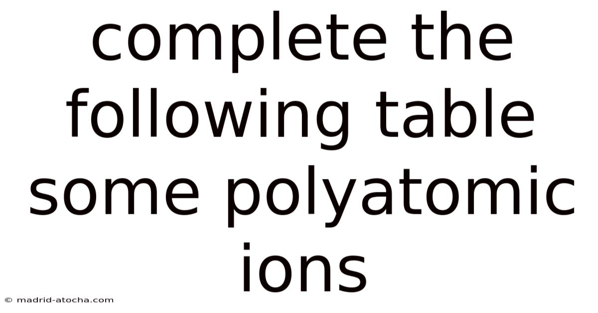 To complete a table of polyatomic ions, you need to identify each ion's name, chemical formula, charge, and sometimes its role in compounds. Here's a step-by-step guide: