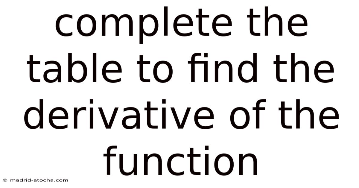 How to Complete a Table to Find the Derivative of a Function: A Step-by-Step Guide