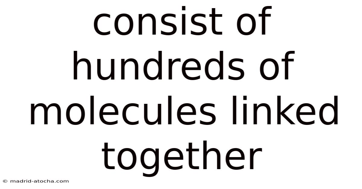 The phrase consist of hundreds of molecules linked together describes a fundamental characteristic of macromolecules, the colossal building blocks of life. On the flip side, from the proteins that catalyze our metabolism to the nucleic acids that store our genetic blueprint, macromolecules are the cornerstone of biological function and material science. Which means grasping how these entities are constructed, how they behave, and why their complexity matters provides deep insight into the very fabric of living organisms and advanced materials. On the flip side, these involved structures are not random assemblies; they are sophisticated, organized polymers formed through precise chemical reactions. This exploration gets into the architecture, formation, and significance of these molecular giants Easy to understand, harder to ignore..