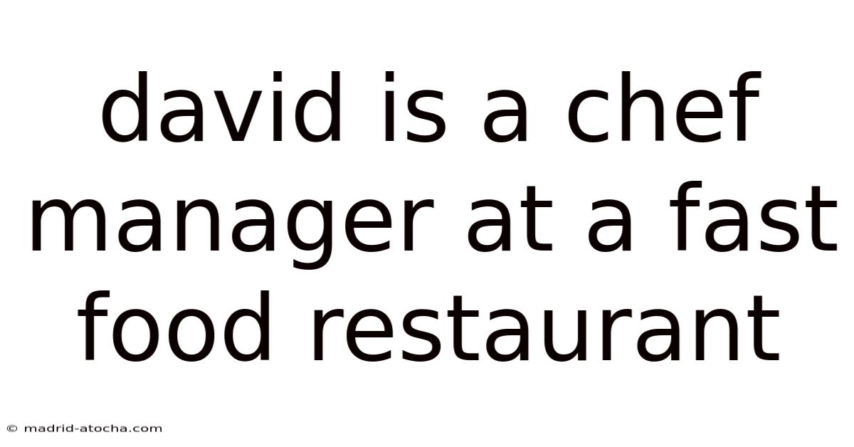 David Is A Chef Manager At A Fast Food Restaurant