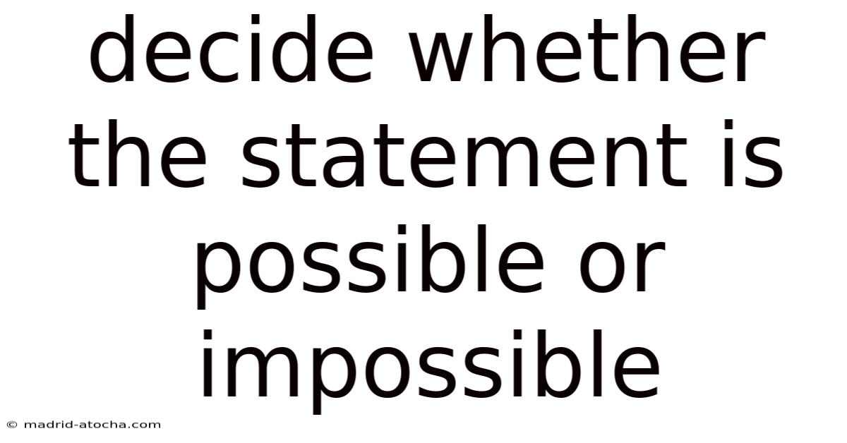 In our daily lives, we encounter countless statements that challenge our understanding of reality. Worth adding: from scientific theories to everyday observations, determining whether a statement is possible or impossible requires critical thinking and a grasp of underlying principles. This article explores the process of evaluating statements to assess their feasibility, providing a structured approach to discerning possibility from impossibility.
