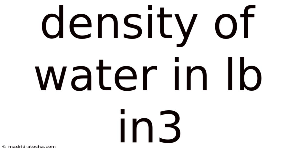 Pure water has a density of approximately 62.Here's the thing — 2°F and atmospheric pressure). To convert this to lb/in³, we need to understand the relationship between cubic feet and cubic inches. 4 lb/ft³ under standard conditions (4°C or 39.Since one cubic foot equals 1,728 cubic inches (12 inches × 12 inches × 12 inches), we can calculate the density of water in lb/in³ by dividing the density in lb/ft³ by 1,728 Most people skip this — try not to..