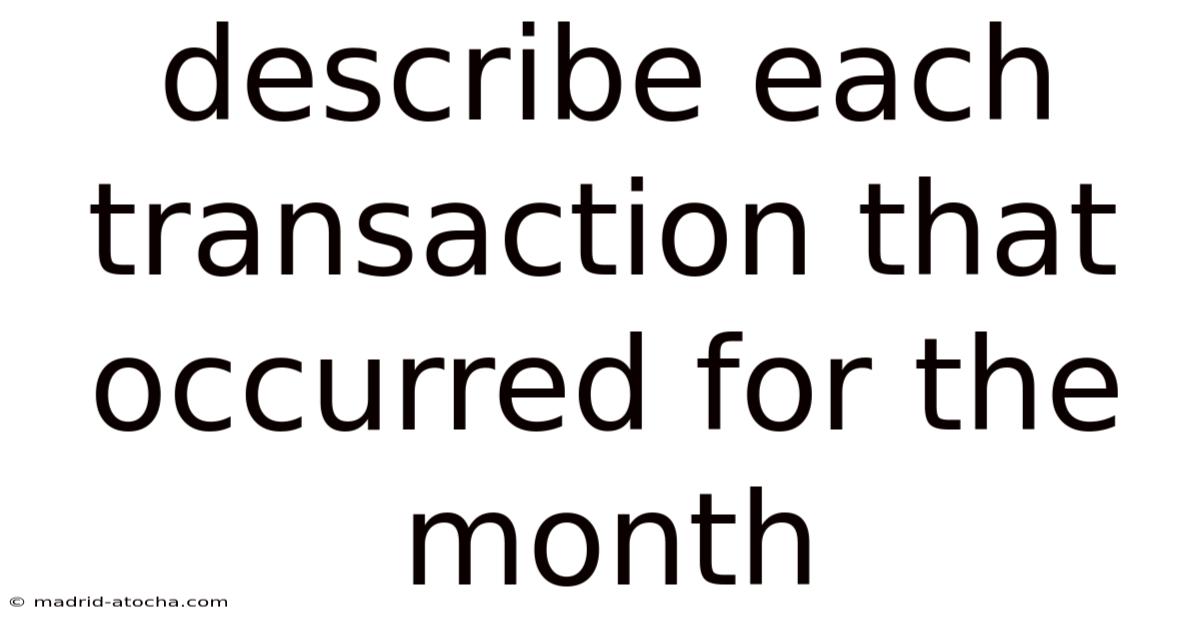 Understanding and Describing Each Transaction That Occurred for the Month