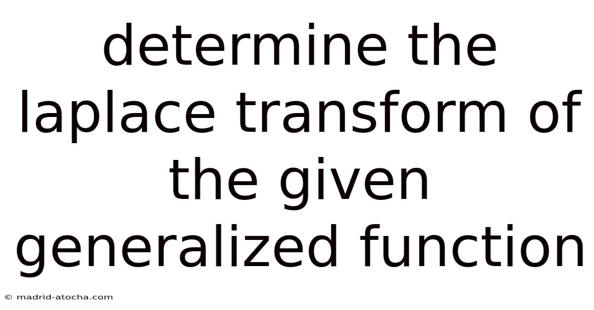 Learning how to determine the laplace transform of the given generalized function is a foundational skill for students and professionals navigating advanced engineering, physics, and applied mathematics. Because of that, unlike classical continuous functions, generalized functions (or distributions) such as the Dirac delta and Heaviside step function require a specialized analytical approach that extends traditional integration into distribution theory. This thorough look breaks down the process into clear, actionable steps, explains the underlying mathematical principles, and provides practical examples so you can confidently solve these problems and apply them to real-world differential equations, control systems, and signal processing.