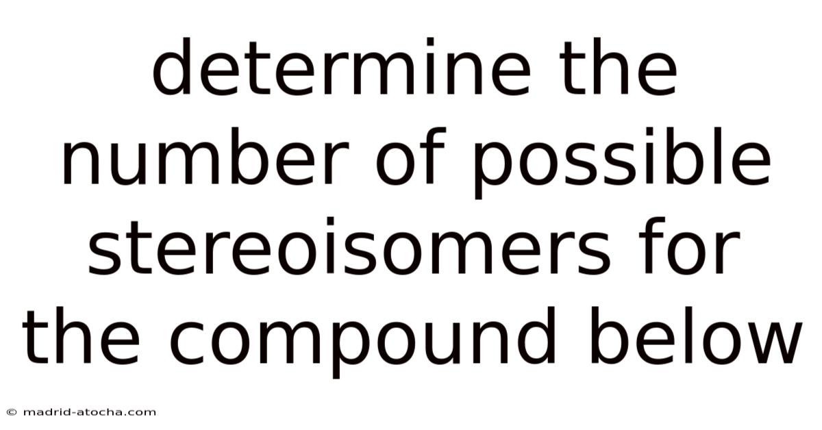 When a chemist is asked to determine the number of possible stereoisomers of a molecule, the answer is rarely a simple “two” or “four.” The final count depends on a combination of structural features—chiral (asymmetric) carbon atoms, stereogenic double bonds, axial chirality, and the presence of symmetry elements that can create meso forms. This article walks you through a step‑by‑step strategy for evaluating any organic compound, explains the underlying theory, and provides illustrative examples that can be adapted to the specific structure you are studying The details matter here. Took long enough..