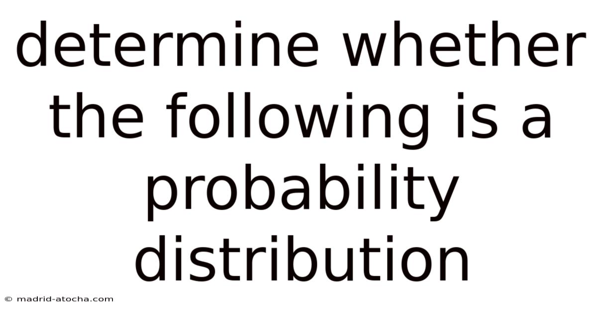 To determine whether the following is a probability distribution, you must verify that every rule of probability is satisfied and that the structure follows the formal definition used in statistics. A probability distribution describes how probabilities are assigned to all possible outcomes of a random event. Worth adding: it serves as a mathematical model that connects real-world uncertainty with numerical reasoning. Without satisfying the required conditions, a table, formula, or graph cannot be treated as a valid probability distribution, no matter how logical it appears at first glance.