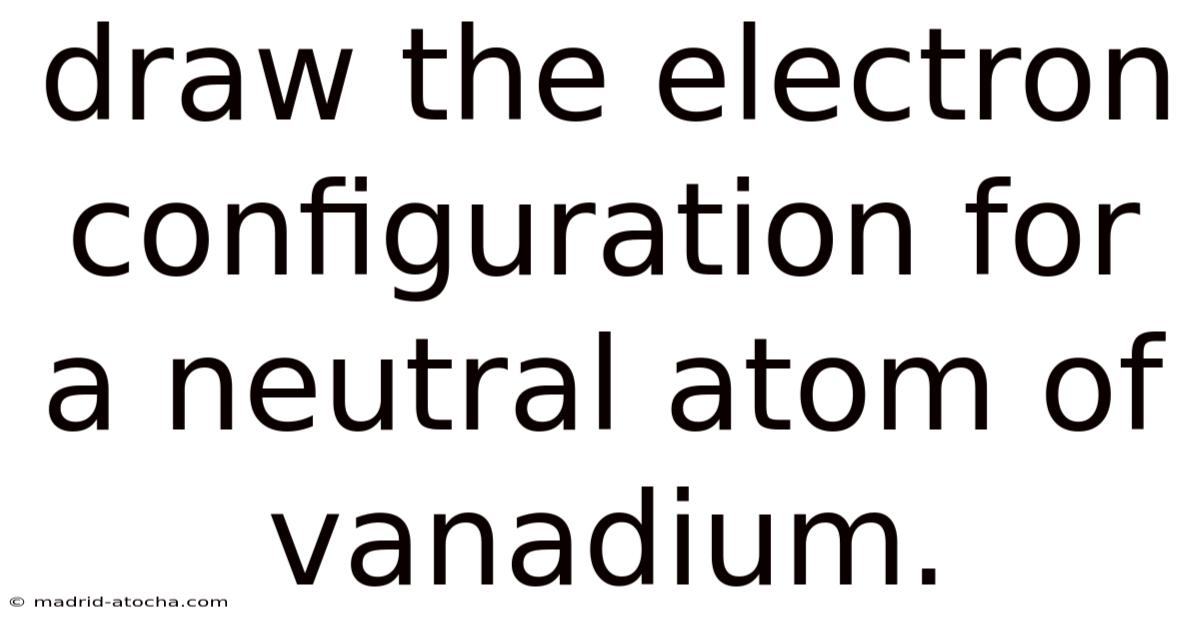 Vanadium is a transition metal with atomic number 23, which means it has 23 protons and, in its neutral state, 23 electrons. Even so, understanding how to draw its electron configuration is essential for grasping its chemical behavior and bonding properties. This article will guide you step-by-step through the process of writing the electron configuration for a neutral atom of vanadium.